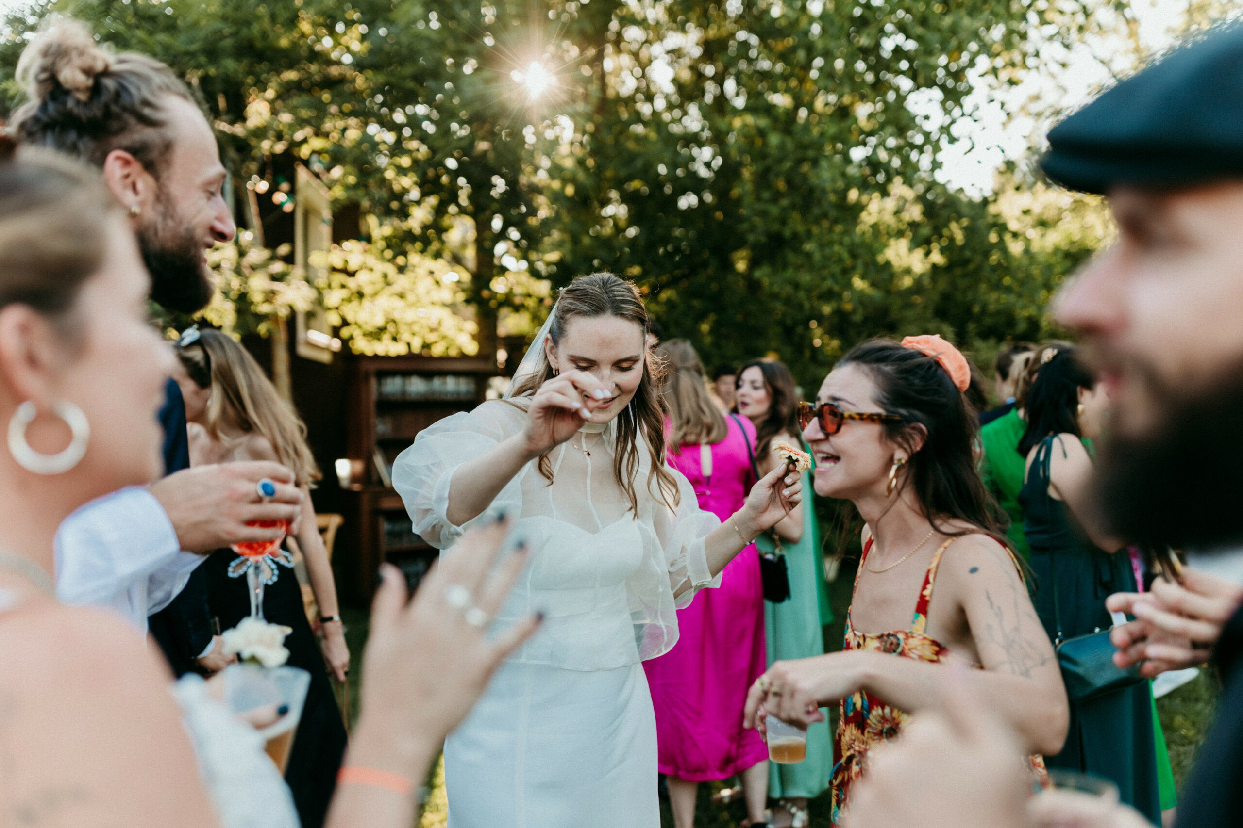 Ma priorité est de capturer des moments vrais. Je réalise quelques photos de groupe si vous le souhaitez, mais je privilégie les instants spontanés. Naturellement, nous prenons un moment pour vos photos de couple, qui sont plus un moment privilégié tous les deux.