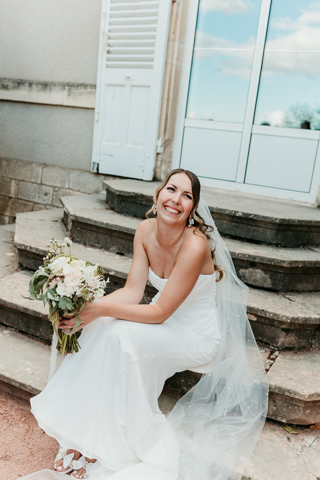 mariée dans grand escalier